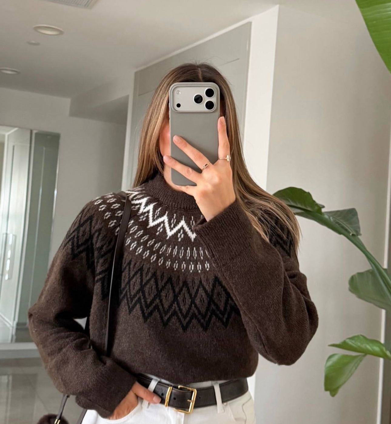 Brown Fair Isle Knit Sweater